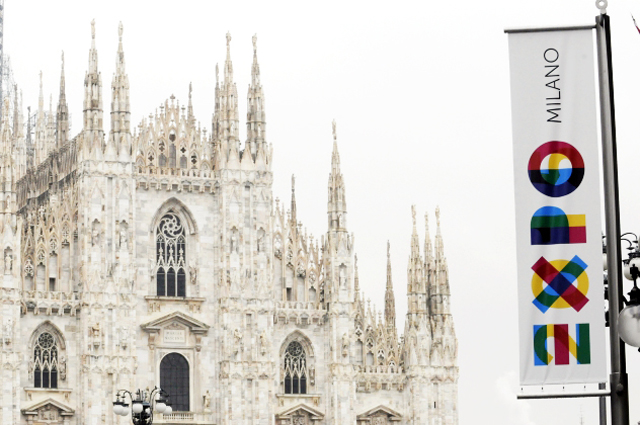 Multicoloured letteringÀÇ ‘2015 EXPO MILANO’·Î°í´Â ¹Ð¶ó³ë¸¦ °ú°Å¿¡¼ ¹Ì·¡·Î °ßÀÎÇÏµí µµ½Ã ±¸¼®±¸¼®¿¡¼ ½ÉÇÃÇÏ°íµµ ÀþÀº ¿¡³ÊÁö¸¦ »Õ¾î³»°í ÀÖ´Ù.