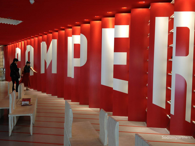 At first glance from the entrance of the retail store, we see 'Camper' plastered across