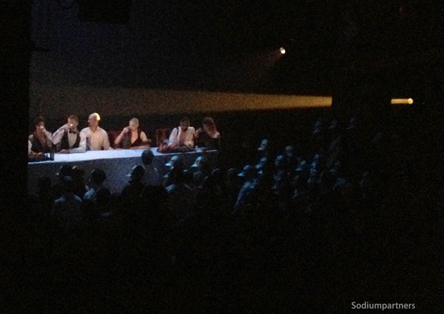 Guests are welcomed into a cabaret bar at The McKittrick Hotel, before being masked and guided into