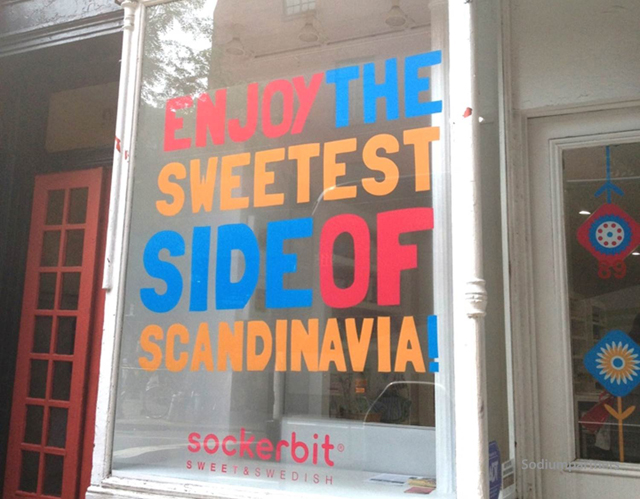 The use of the alliteration in ‘Sweet & Swedish,’ gives the brand a memorable persona that not only brands the candy store itself, but serves as a representation to the sweet and welcoming attributes
