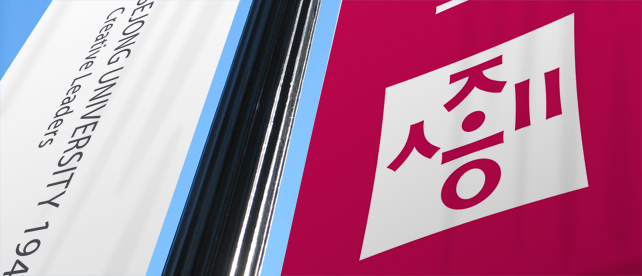 º£ÀÌÁ÷ µðÀÚÀÎ ½Ã½ºÅÛÀº, Çб³ÀÇ Á¤Ã¼¼ºÀ» Àü´ÞÇÏ´Â °ø½Ä¸¶Å©·Î¼ ±âÁ¸ÀÇ ±³Ç¥¸¦ °è½ÂÇÑ Authority Mark¿Í ´ë °í°´ Ä¿¹Â´ÏÄÉÀ̼ǿ¡ ÁßÁ¡ÀûÀ¸·Î Ȱ¿ëÇÏ´Â Communication Mark·Î ÀÌ¿øÈ ÇÏ´Â Àü·«À» È®Á¤ÇÏ¿´´Ù. »õ·Î¿î ½Ã°¢Àû ¿ä¼ÒÀÎ Communication Mark´Â µ¶Ã¢ÀûÀÎ »ç°¢Çü ÇüÅ ¾È¿¡ ÇѱÛÀ» ¼ÒÀç·Î ¡°¼¼Á¾¡±À» °¡·Î/¼¼·Î·Î Ç®¾î¼ Ç¥±âÇÏ¿© Â÷º°ÈµÈ ´ëÇÐ À̹ÌÁöÀ» Ç¥ÇöÇϰí ÀÖ´Ù. ¶ÇÇÑ, À̸¦ ¡°Creative Square¡±¶ó°í ¸í¸íÇÏ¿´´Ù.